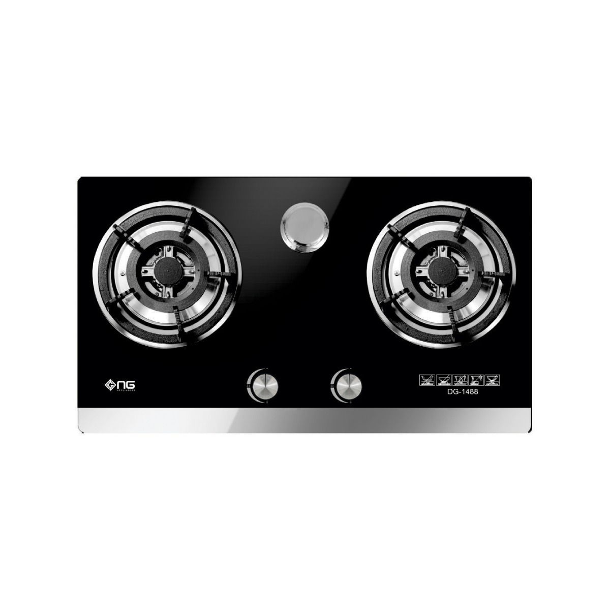 Buy the NasGas DG-GN2 2-Burner Built-In Glass-Top Gas Hob from AL-IMRAN Electronics. Features include tempered-glass surface, large gas burners, cast-iron trivets, and 3V auto-ignition for reliable performance.