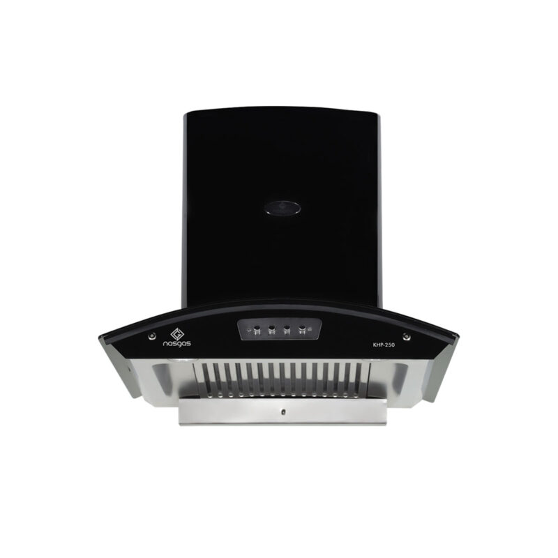 The NasGas KHD‑330 is a powerful T‑shape kitchen hood with 1,100 m³/h airflow, a pure‑copper motor, 3-speed fan control, hand sensor + auto-clean functionality, stainless-steel canopy filters, and sleek 5 mm tempered glass design.