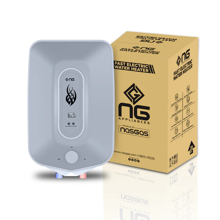 NasGas SEM‑300 Plus is a powerful instant electric water heater delivering consistent hot water on demand — featuring a heavy‑gauge tank, safety protections and strong flow output, ideal for showers or kitchen use.